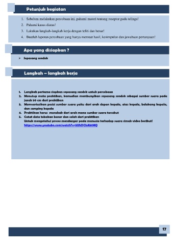 1. Sebelum melakukan percobaan ini, pahami materi tentang reseptor pada telinga!