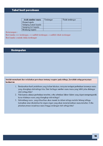Setelah memahami dan melakukan percobaan tentang reseptor pada telinga, Jawablah setiap pernyataan
