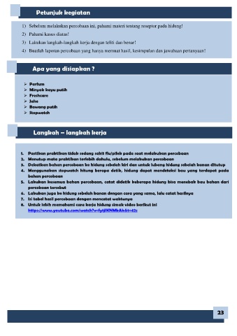 1) Sebelum melakukan percobaan ini, pahami materi tentang reseptor pada hidung!