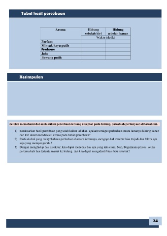 dan kiri dalam mendeteksi aroma pada bahan percobaan?
