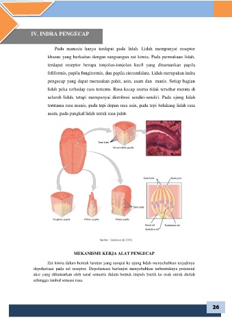 pengecap yang dapat merasakan pahit, asin, asam dan manis. Setiap bagian