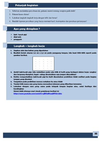 1. Sebelum melakukan percobaan ini, pahami materi tentang reseptor pada kulit!