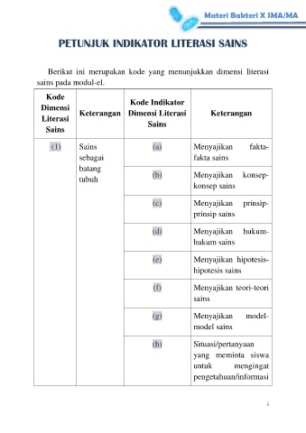 PETUNJUK INDIKATOR LITERASI SAINS