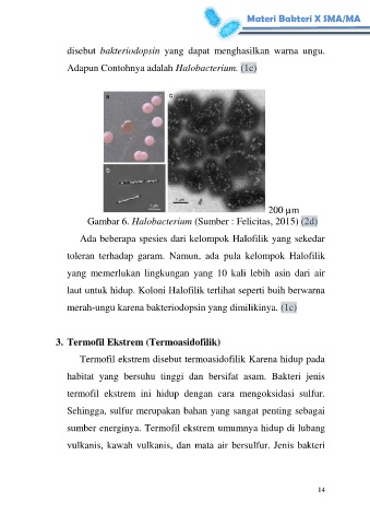 merah-ungu karena bakteriodopsin yang dimilikinya. (1c)