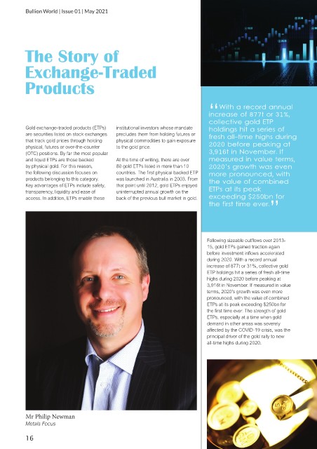 access. In addition, ETPs enable those back of the previous bull market in gold. exceeding $250bn for