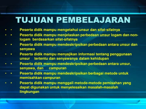 • • Peserta didik mampu mengetahui unsur dan sifat-sifatnya