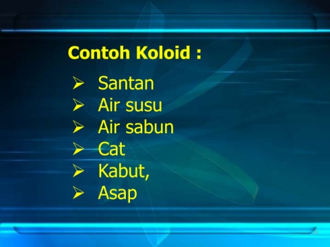 Contoh Koloid : Santan Air susu Air sabun Cat Kabut, Asap 32