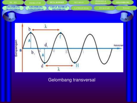PERIODE & SK - KD INDIKATOR PETA KONSEP GETARAN FREKWENSI GELOMBANG GELOMBANG GELOMBANG CEPAT RAMBAT TRANSVERSAL LONGITUDINAL GELOMBANG LATIHAN SOAL EVALUASI TUGAS a Gelombang transversal