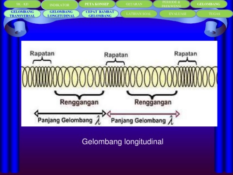 PERIODE & SK - KD INDIKATOR PETA KONSEP GETARAN FREKWENSI GELOMBANG GELOMBANG GELOMBANG CEPAT RAMBAT TRANSVERSAL LONGITUDINAL GELOMBANG LATIHAN SOAL EVALUASI TUGAS Gelombang longitudinal