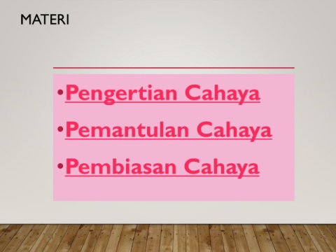 MATERI •Pengertian Cahaya •Pemantulan Cahaya •Pembiasan Cahaya