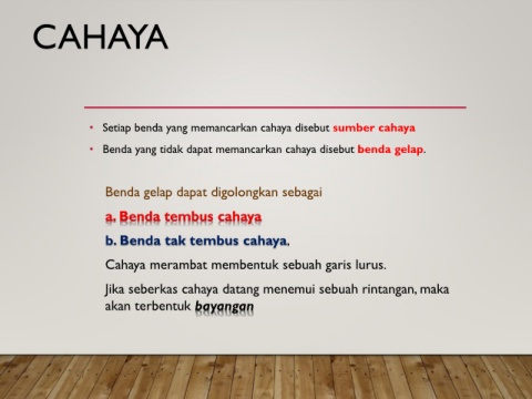 • Benda yang tidak dapat memancarkan cahaya disebut benda gelap.