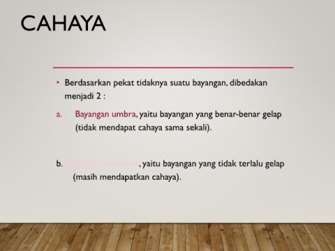 • Berdasarkan pekat tidaknya suatu bayangan, dibedakan