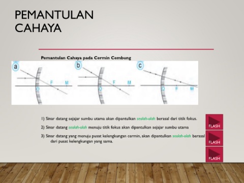 2) Sinar datang seolah-olah menuju titik fokus akan dipantulkan sejajar sumbu utama FLASH