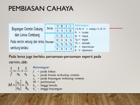 PEMBIASAN CAHAYA Pada lensa juga berlaku persamaan-persamaan seperti pada cermin, sbb: