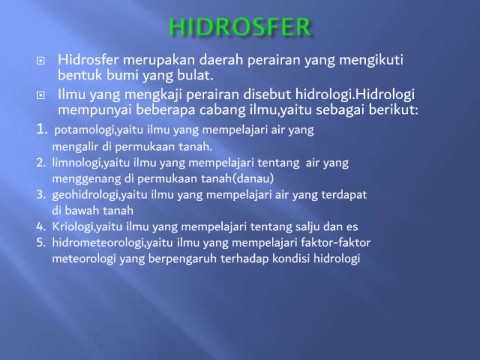 Hidrosfer merupakan daerah perairan yang mengikuti