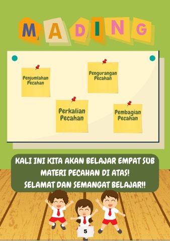Pengurangan Penjumlahan Pecahan Pecahan Perkalian Pembagian Pecahan Pecahan KALI INI KITA AKAN BELAJAR EMPAT SUB MATERI PECAHAN DI ATAS! SELAMAT DAN SEMANGAT BELAJAR!! 5