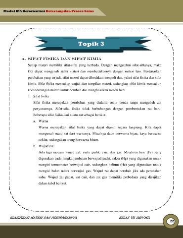 KLASIFIKASI MATERI DAN PERUBAHANNYA KELAS VII SMP/MTs