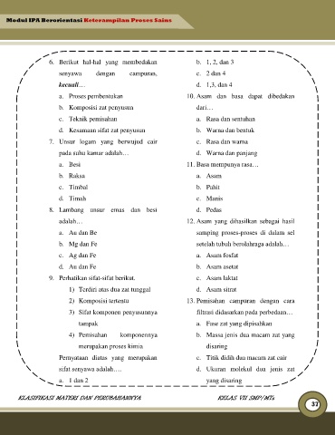 7. Unsur logam yang berwujud cair c. Rasa dan warna