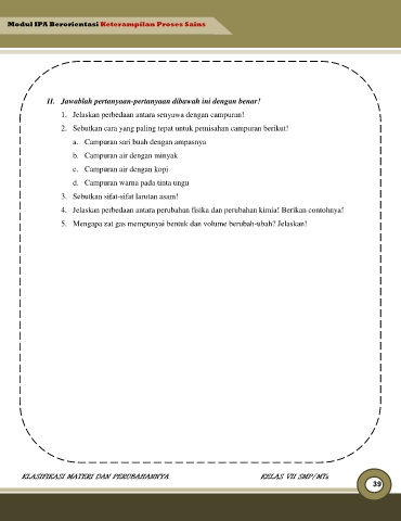 KLASIFIKASI MATERI DAN PERUBAHANNYA KELAS VII SMP/MTs
