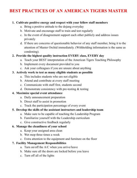 BEST PRACTICES OF AN AMERICAN TIGERS MASTER