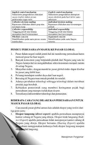 Cara masuk pasar global antara lain adalah ekspor yang terdiri dari