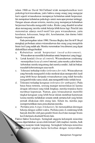 psikologi kewirausahaan, yaitu bahwa orang-orang yang mengejar