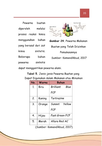 Tabel 5. Jenis-jenis Pewarna Buatan yang