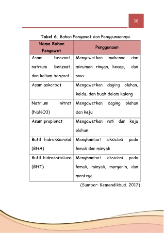 Tabel 6. Bahan Pengawet dan Penggunaannya