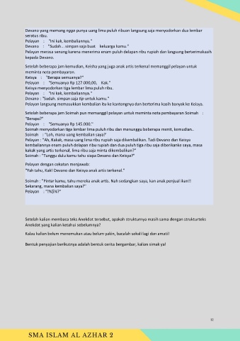 Pelayan : "Ah, Kakak, masa uang lima ribu rupiah saja dikembalikan. Tadi Devano dan Keisya