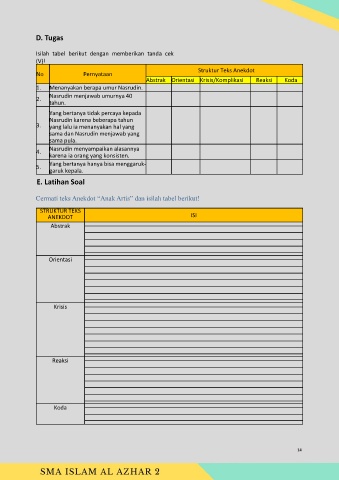 Cermati teks Anekdot “Anak Artis” dan isilah tabel berikut!