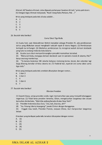 Ahmad. (4)"Saudara Ahmad, coba dijawab pertanyaan Saudara Ali tadi," pinta pak dosen.