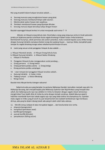 11. Menilik isinya, kutipan di atas merupakan bagian ... dari keseluruhan alur cerita.