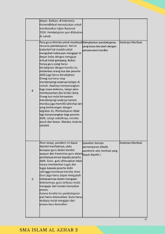 Akan tetapi, pandemi ini dapat (jawaban berupa Deskripsi Manfaat