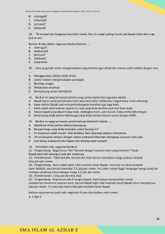 31. Berikut ini yang termasuk kalimat yang santun dalam bernegosiasi adalah ....