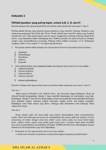 2. Jenis kalimat kedua yang digunakan dalam teks laporan hasil observasi di atas adalah ...