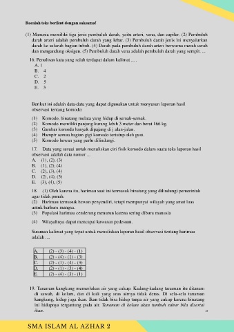 17. Data yang sesuai untuk menuliskan ciri fisik komodo dalam suatu teks laporan hasil