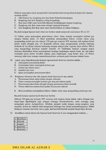 Bacalah kutipan laporan hasil observasi berikut untuk menjawab soal nomor 20 s.d. 22!