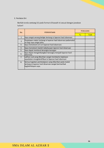 1 Saya sangat senang belajar tentang isi laporan hasil observasi.