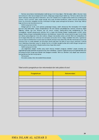 Tabel analisis pengetahuan dan rekomendasi dari teks pidato di atas!