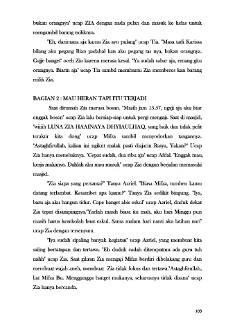 orangnya. Biarin aja" ucap Tia sambil membantu Zia memberes kan barang