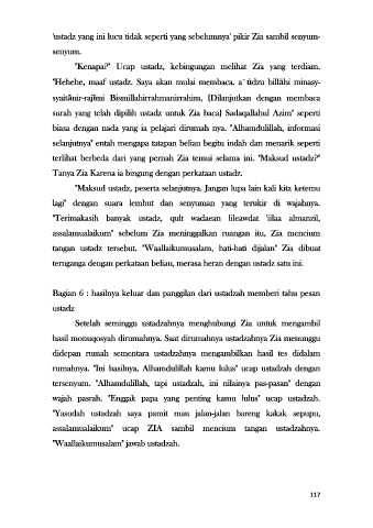 tangan ustadz tersebut. "Waallaikumusalam, hati-hati dijalan" Zia dibuat