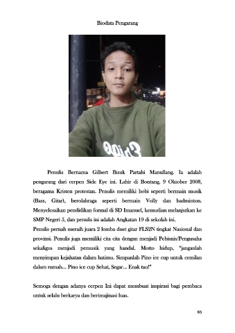 pengarang dari cerpen Side Eye ini. Lahir di Bontang, 9 Oktober 2008,
