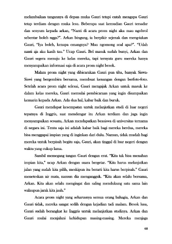 dan senyum kepada arkan, “Nanti di acara prom night aku mau ngobrol
