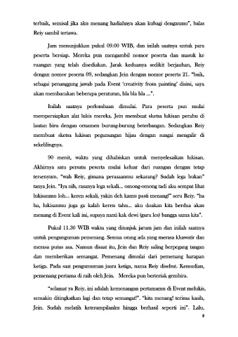 “selamat ya Reiy, ini adalah kemenangan pertamamu di Event melukis,
