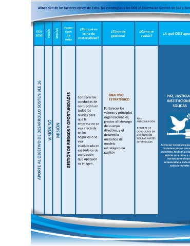 Alineación de los factores claves de éxito, las estrategias y los ODS al Sistema de Gestión de SST y Sostenibilidad Social