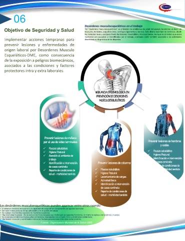 Objetivo de Seguridad y Salud músculos, tendones, esqueleto óseo, cartílagos ligamentos y nervios. Esto abarca todo tipo de dolencias, desde