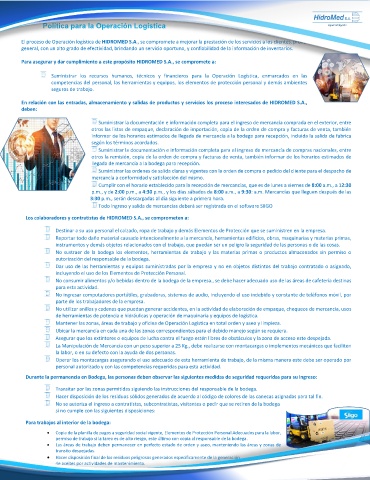 El proceso de Operación logística de HIDROMED S.A., se compromete a mejorar la prestación de los servicios a los clientes, proveedores y usuarios en