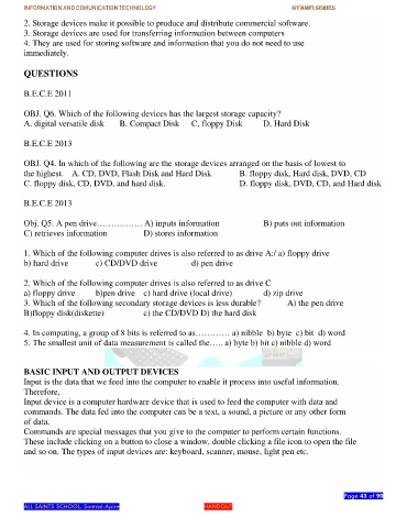 Obj. Q5. A pen drive……………. A) inputs information B) puts out information