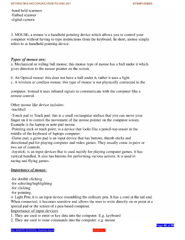 3. MOUSE; a mouse is a handheld pointing device which allows you to control your
