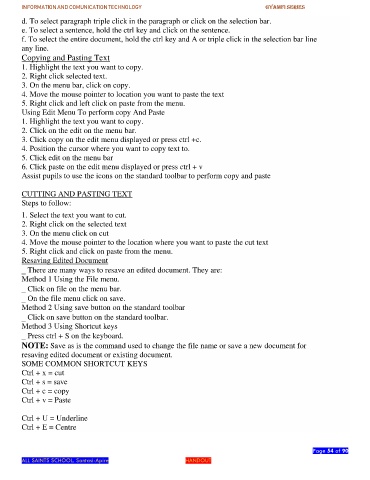 d. To select paragraph triple click in the paragraph or click on the selection bar.